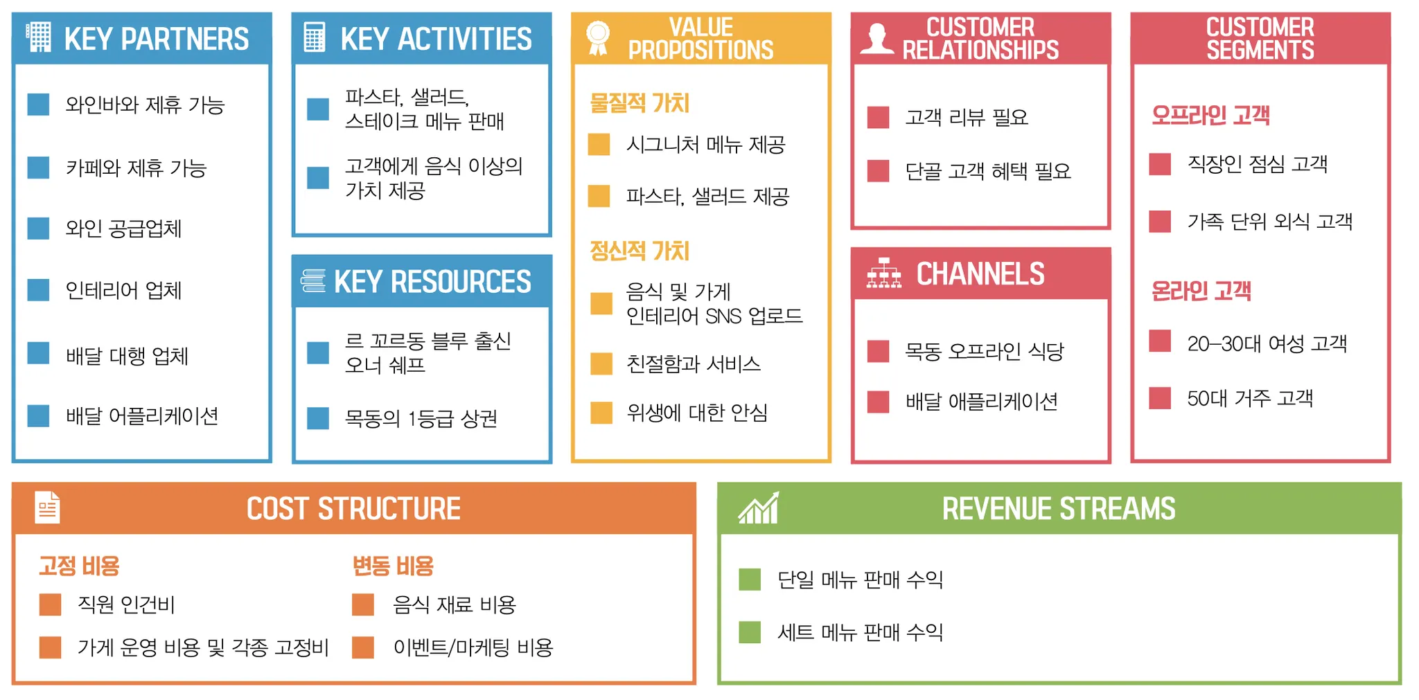 Business canvas of restaurant